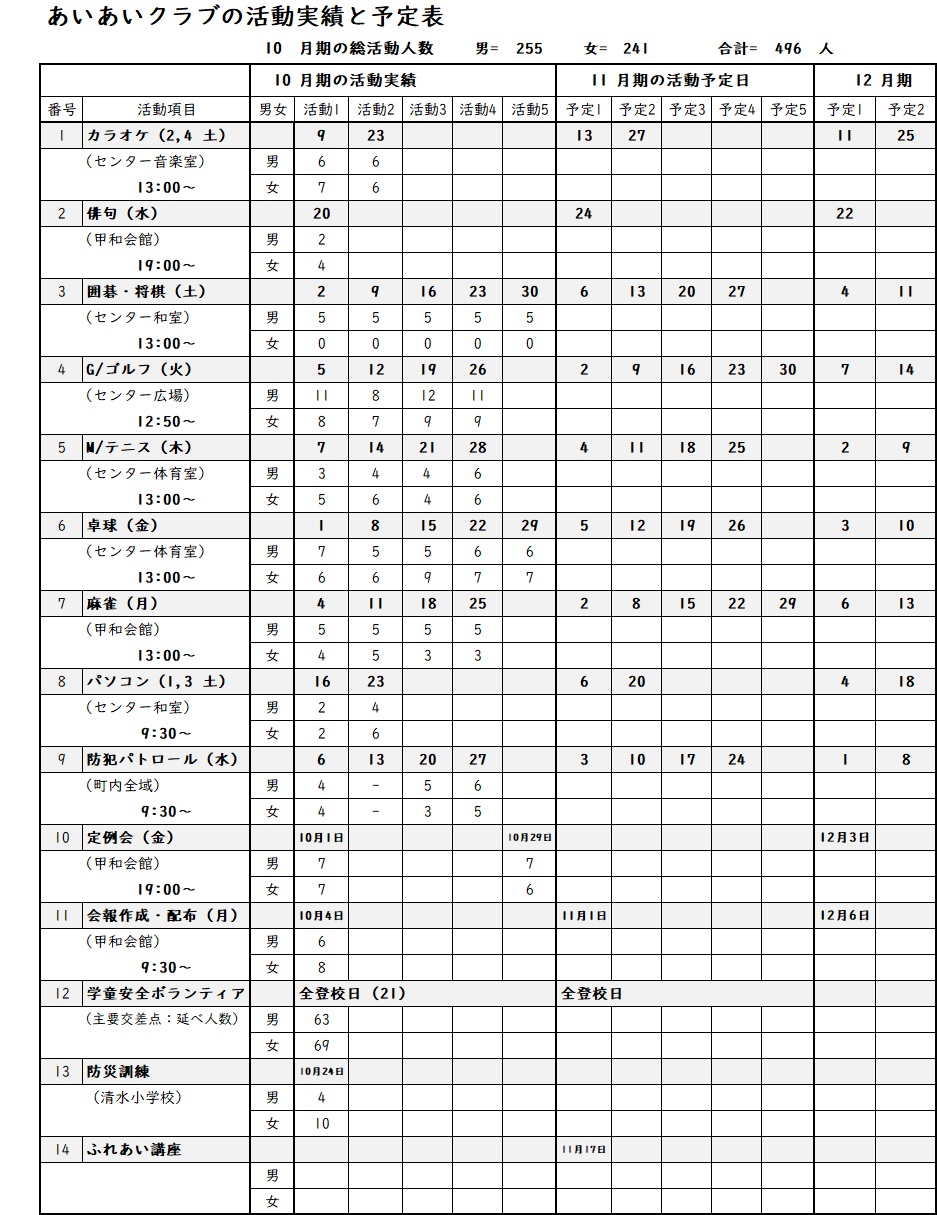 それでは、会員の皆様ウィズコロナという行動変容が前提のもと11月も元気いっぱいの活動を繰り広げていきましょう。