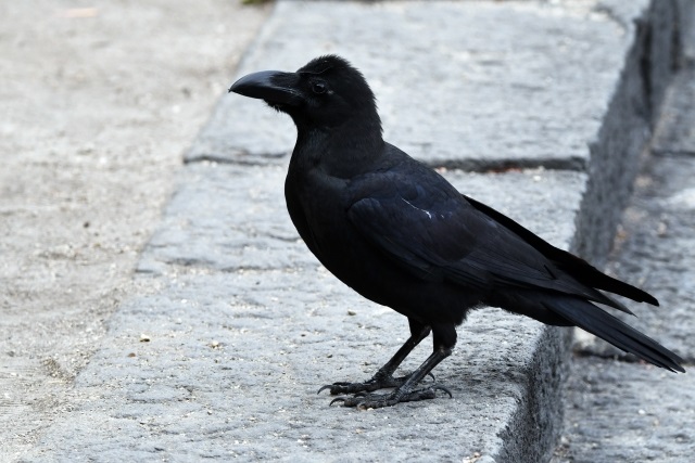 その名の通りハシブトガラスはくちばしが大きく湾曲して太く、おでこも大きく、全体的に大柄です。