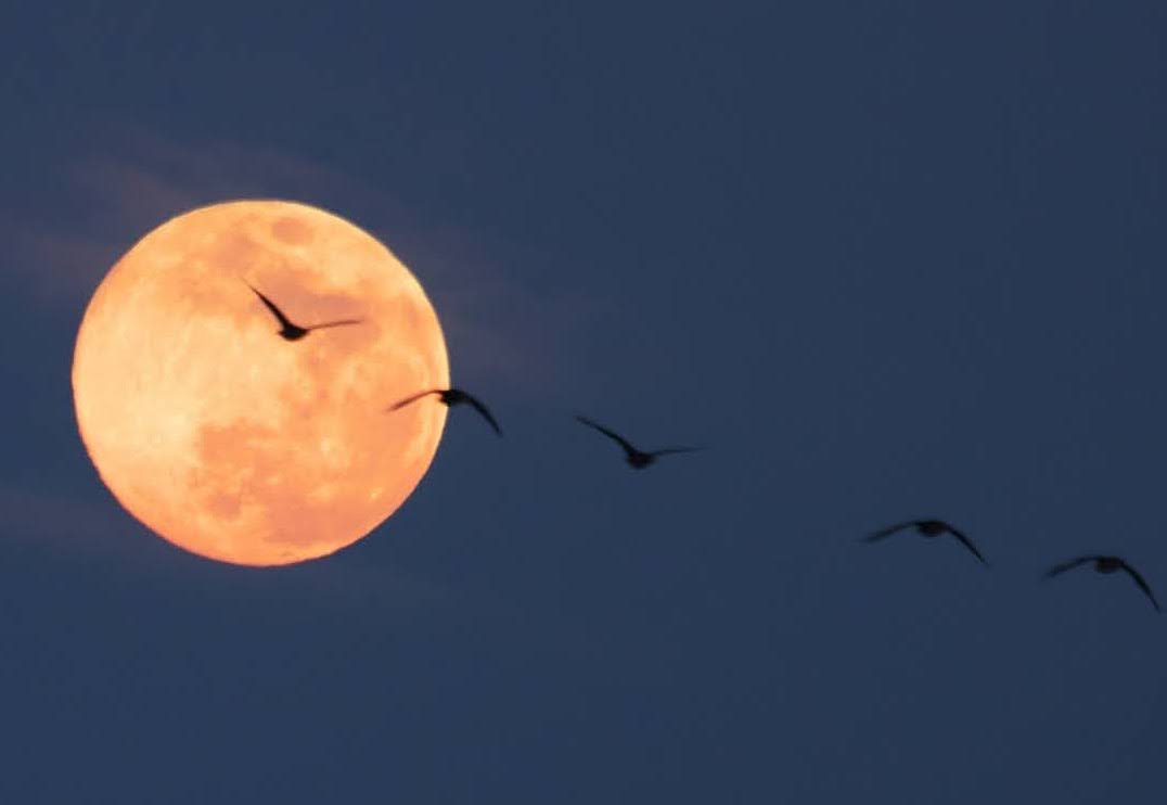 満月を飛ぶ真雁