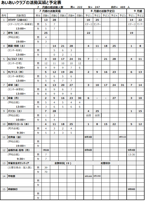 9月30日に恒例の日帰り研修旅行は横浜方面の三渓園での重要文化財と歴史的建造物の見学研修で決定です。中華街での昼食は満足度が高そうです。タイムスケジュール等は来月号に掲載いたします。それでは皆様、今月も元気に乗りきっていきましょう。