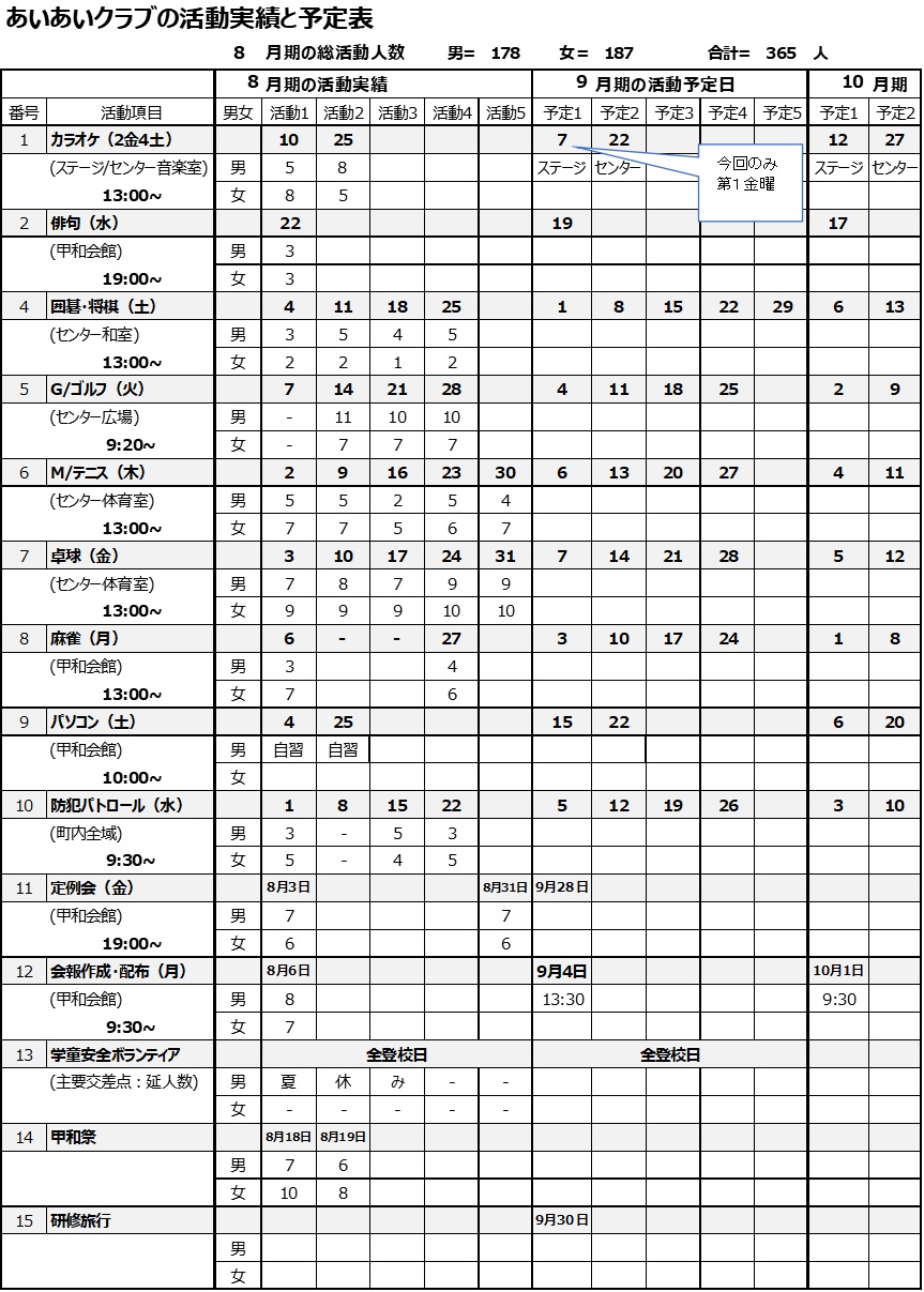 そんな想定外の夏であっても、甲和あいあいクラブメンバーの皆様におかれましては、長年の智慧を駆使して折り合いをつけながら元気にお過ごしかと思います。